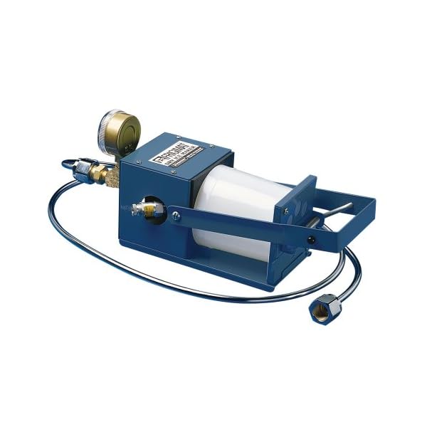 The Bel-Art Economy Frigimat portable dry out water ice maker, European model number 388760002 by Scienceware, has a low-density polyethylene chamber for strength and chemical resistance for molding dry ice. Dry ice is used to proceed a substance or object cold in food handling and shipping, scientific discipline, and medical applications, and is used to create a fog-type of atmosphere in the amusement manufacture. This dry ice maker is good for use in remote locations or where at that place is express availability of commercially prepared dry water ice. Its chamber is secured into identify past a metal clamping mechanism for reliability. A fifty-lb. cylinder of liquid carbon dioxide ([LCO2] sold locally, separately) with dip tube makes 8 454-gram (xvi ounce) blocks of dry ice. Each block measures x.4 (l) x nine.ii (w) cm, and is produced in approximately one to two minutes. The dry out ice maker features a porous polyethylene improvidence plate to vent excess gas, and a born gas force per unit area gauge with relief valve to monitor and prevent pressure level build-up for safe operation. Its epoxy-coated steel frame has four non-slip rubber feet at its base of operations to prevent sliding.